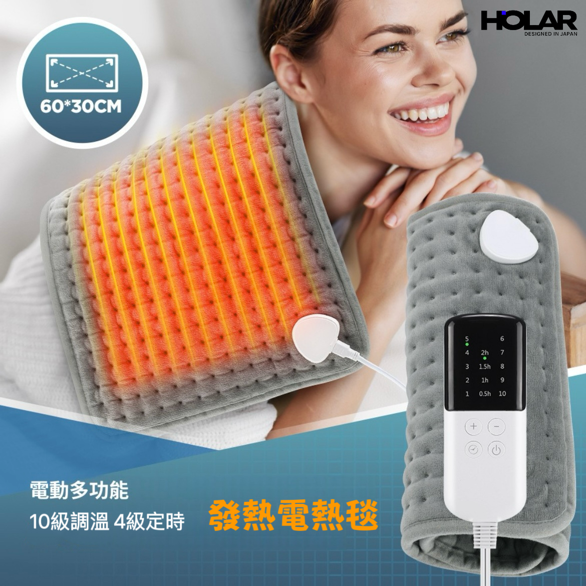 HOLAR JAPAN 十檔理療恆溫定時加熱墊 多功能電熱墊 | 披肩 |電暖毯 | 電熱毯 HS0079