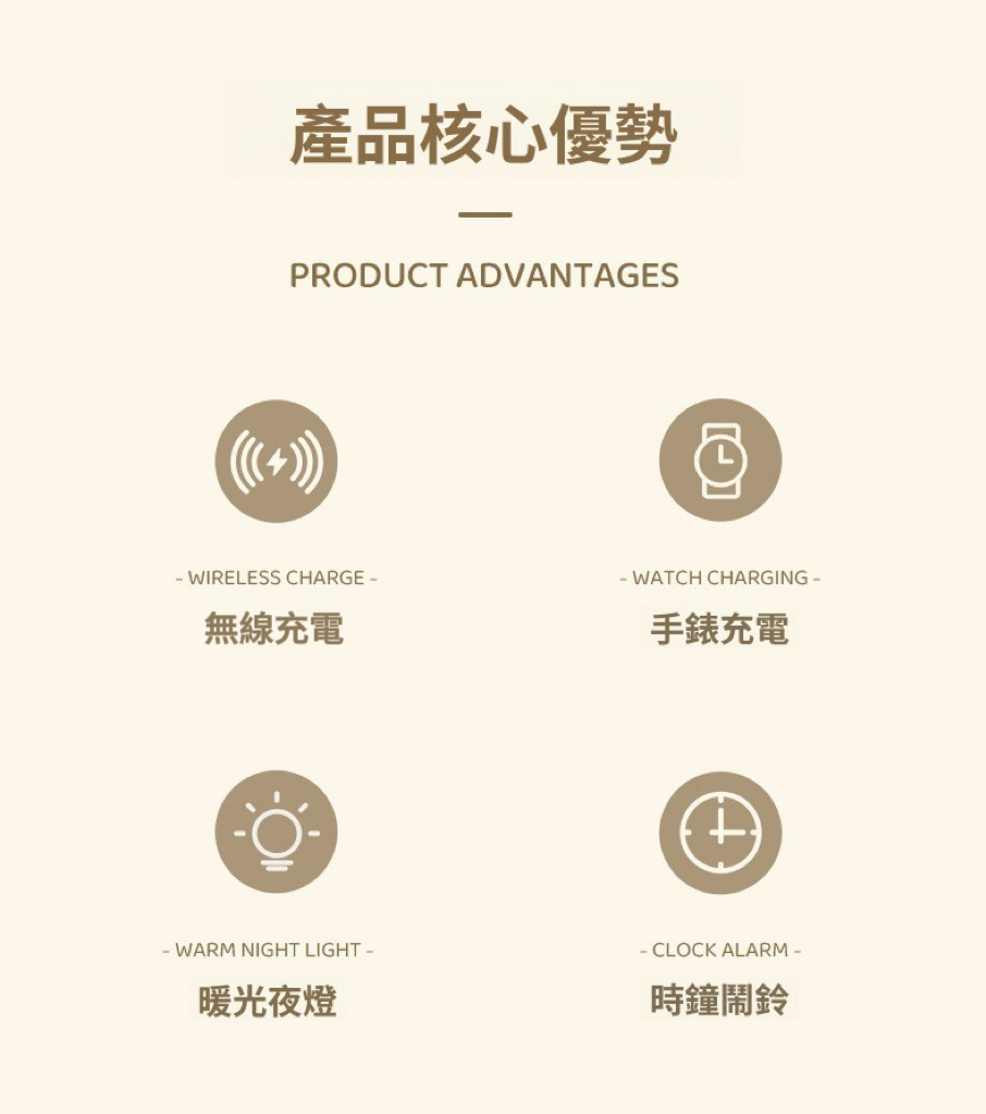 HOLAR JAPAN 三合一磁吸15W快充無線充觸控無極調光小夜燈LED時間鬧鐘 HS0179