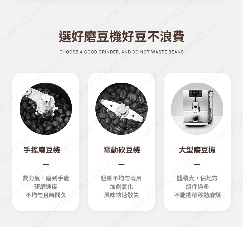 HOLAR JAPAN 便攜式電動研磨咖啡機家用磨豆機全自動小型磨粉器五穀豆類乾磨機 HS0049