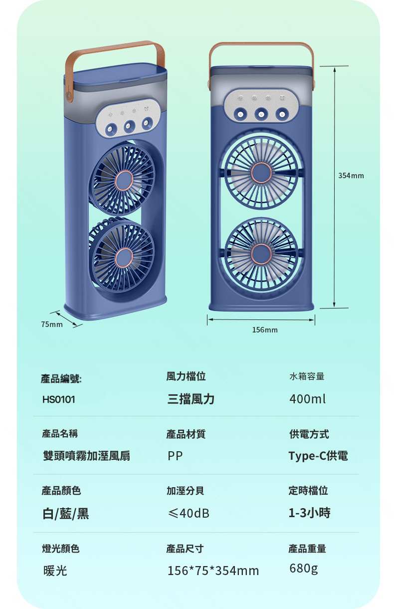 HOLAR JAPAN 噴霧加濕風扇 | 水冷風扇|夜燈風扇 |雙頭風扇|座枱風扇|空調扇|冷風機 HS0101