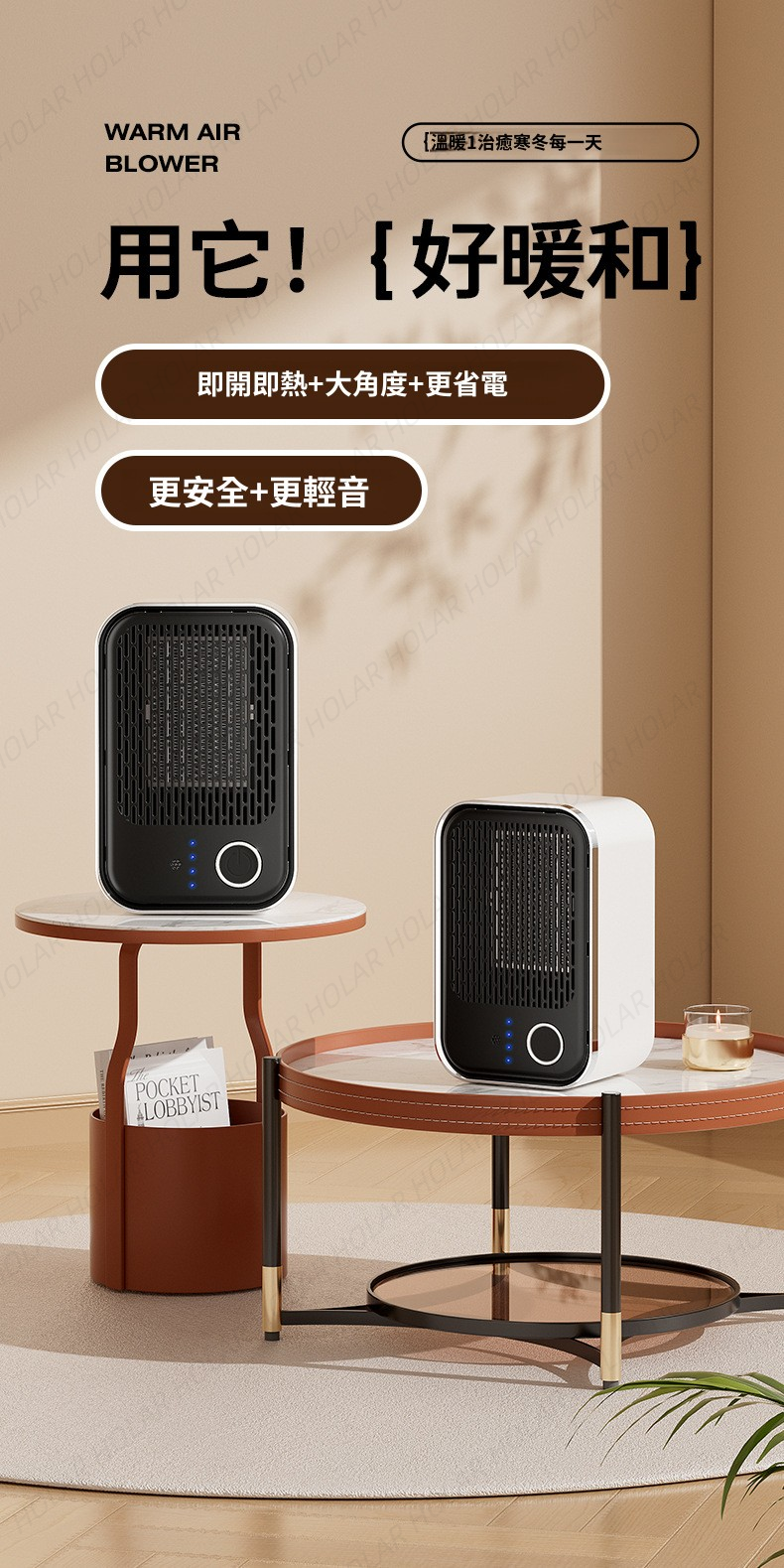 HOLAR JAPAN 家用桌面1600W高功率智能遙控定時速熱暖風機
