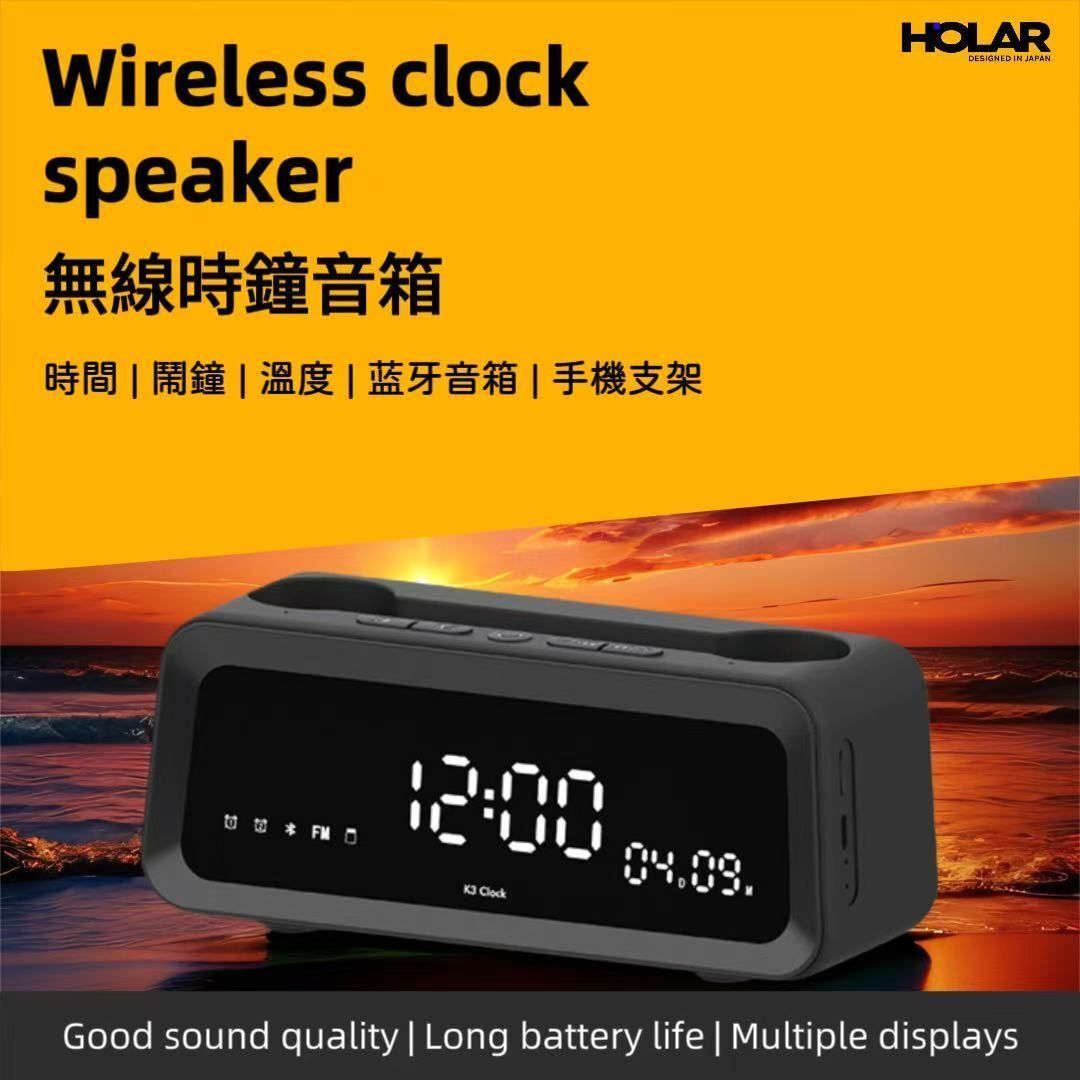 HOLAR JAPAN 時鐘鬧鐘溫度多功能FM收音機音響喇叭 手機支架無線藍牙音響 HS0162