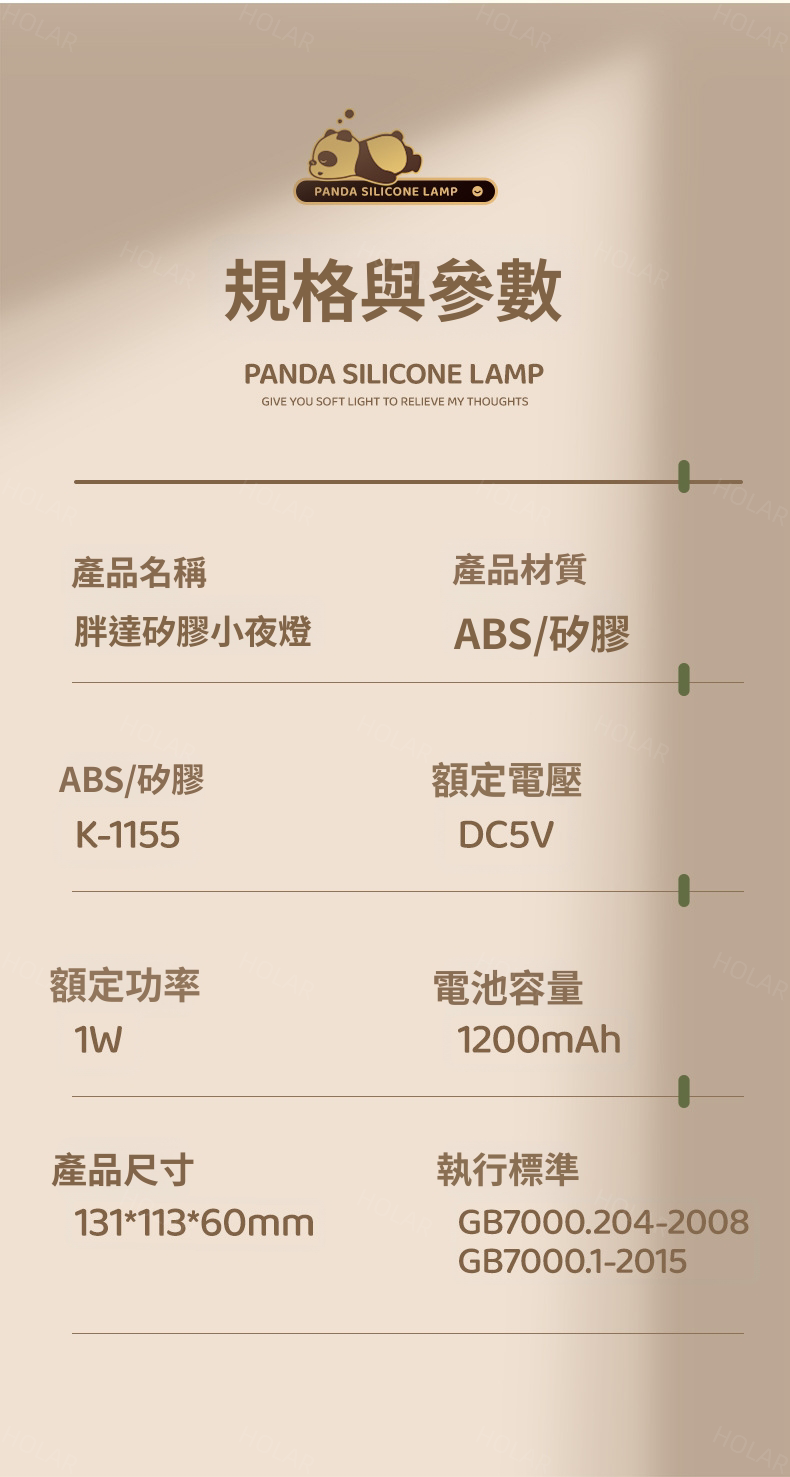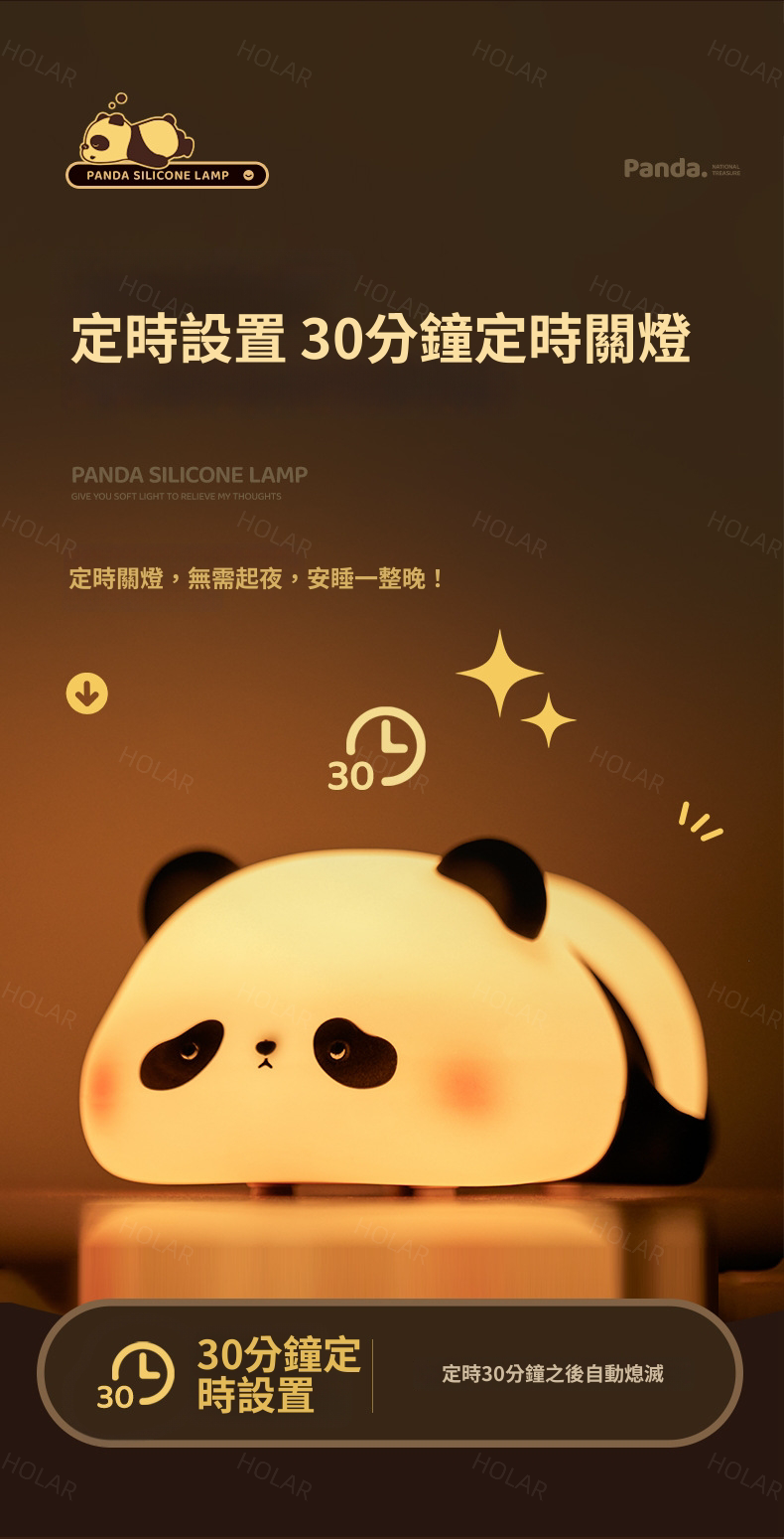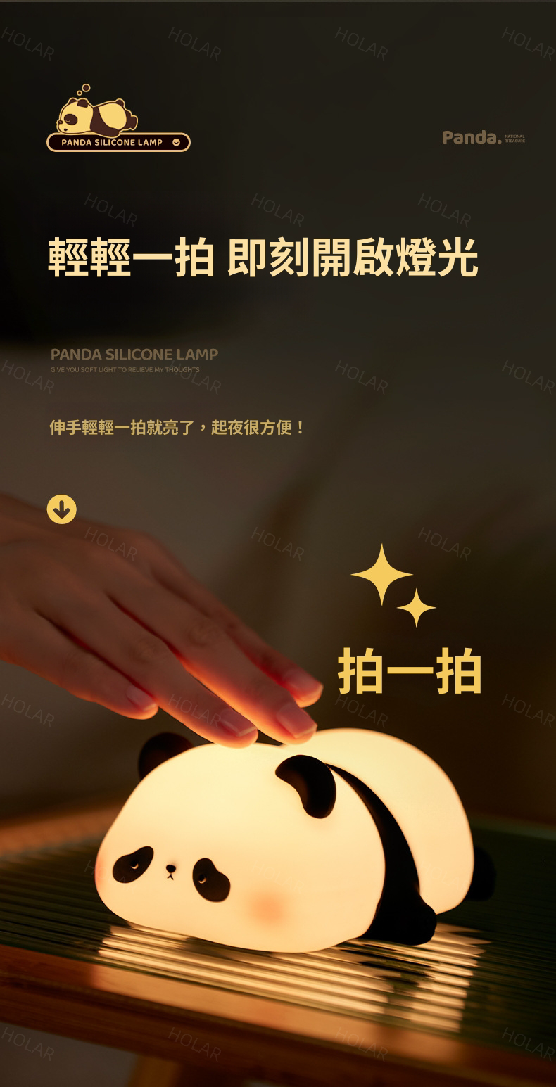 HOLAR JAPAN 熊貓款矽膠小夜燈拍拍燈床頭小夜燈臥室氣氛燈充電檯燈 HS0230