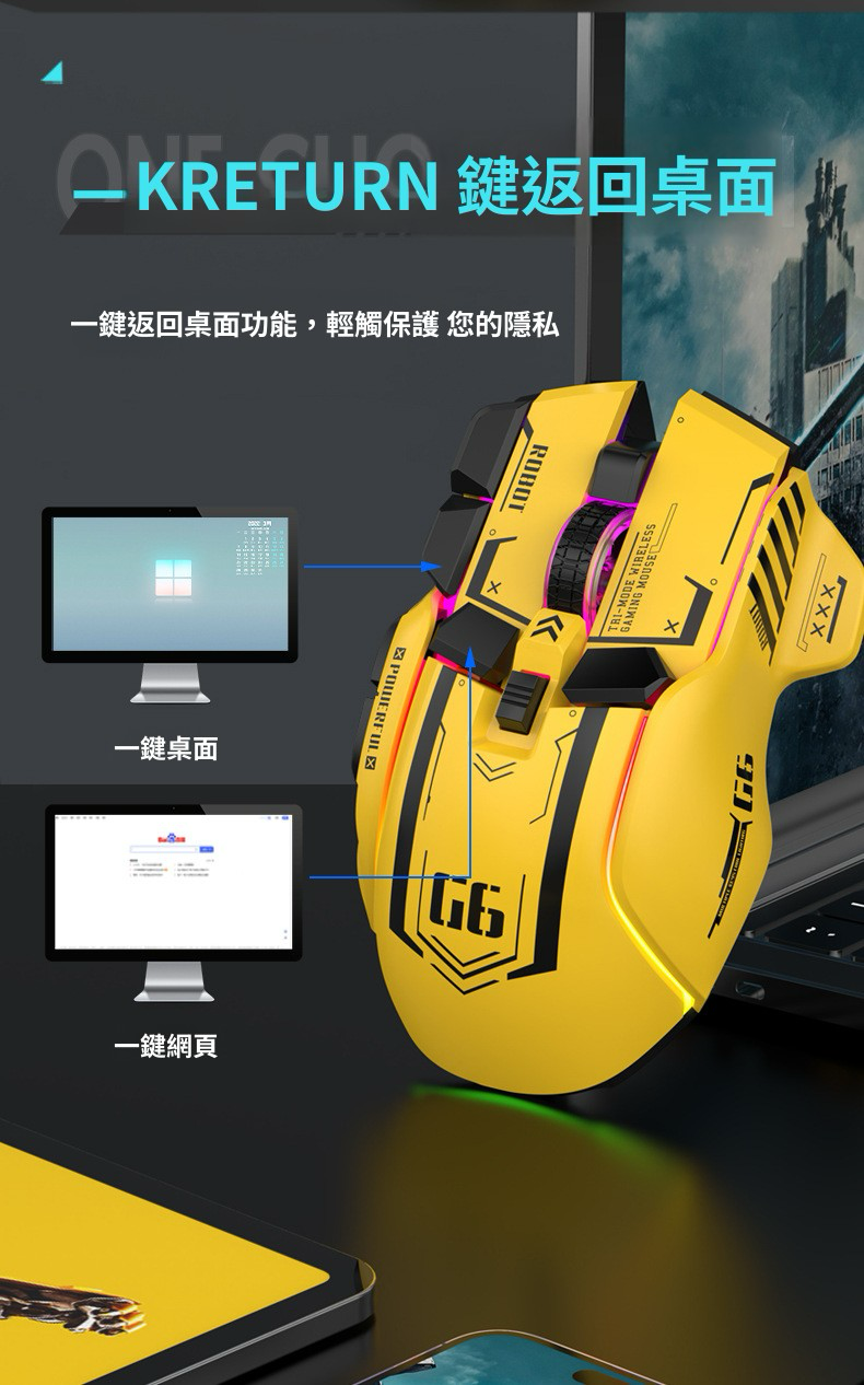 HOLAR JAPAN 藍牙三模無線滑鼠RGB電競遊戲電腦靜音type-c充電有線機械滑鼠 鼠標 HS0188