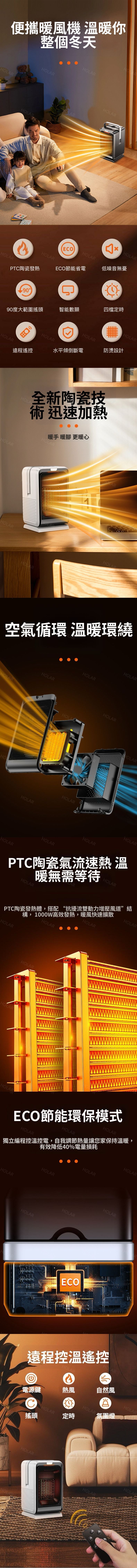 HOLAR JAPAN 遙控款便攜式暖風機 冷暖兩用PTC速熱搖頭電暖器 暖器