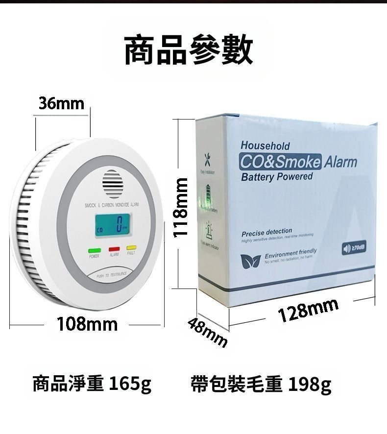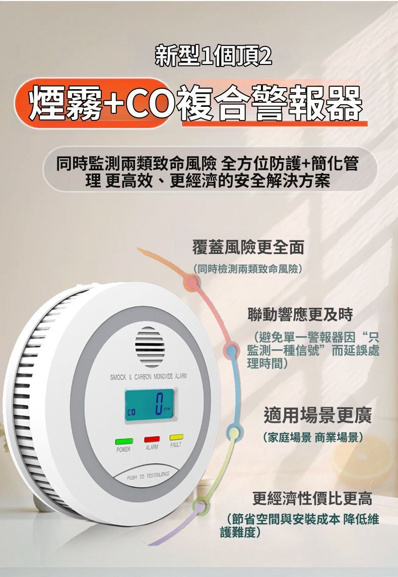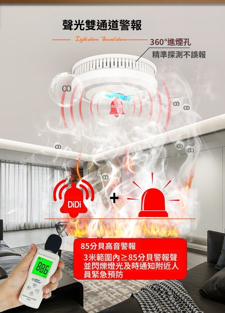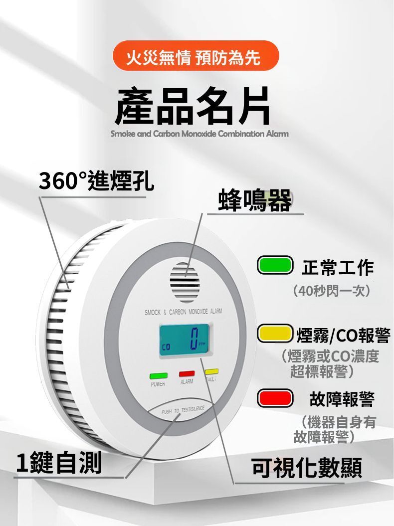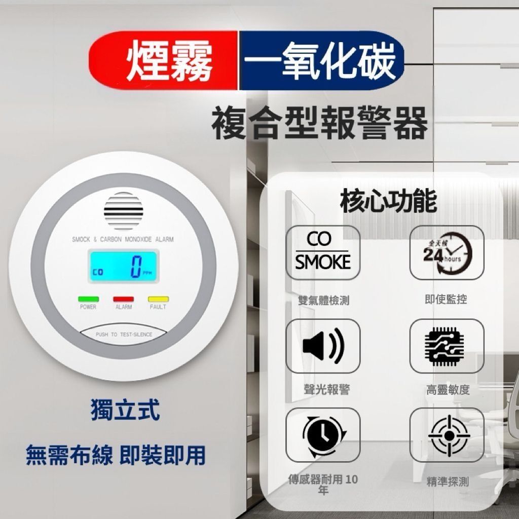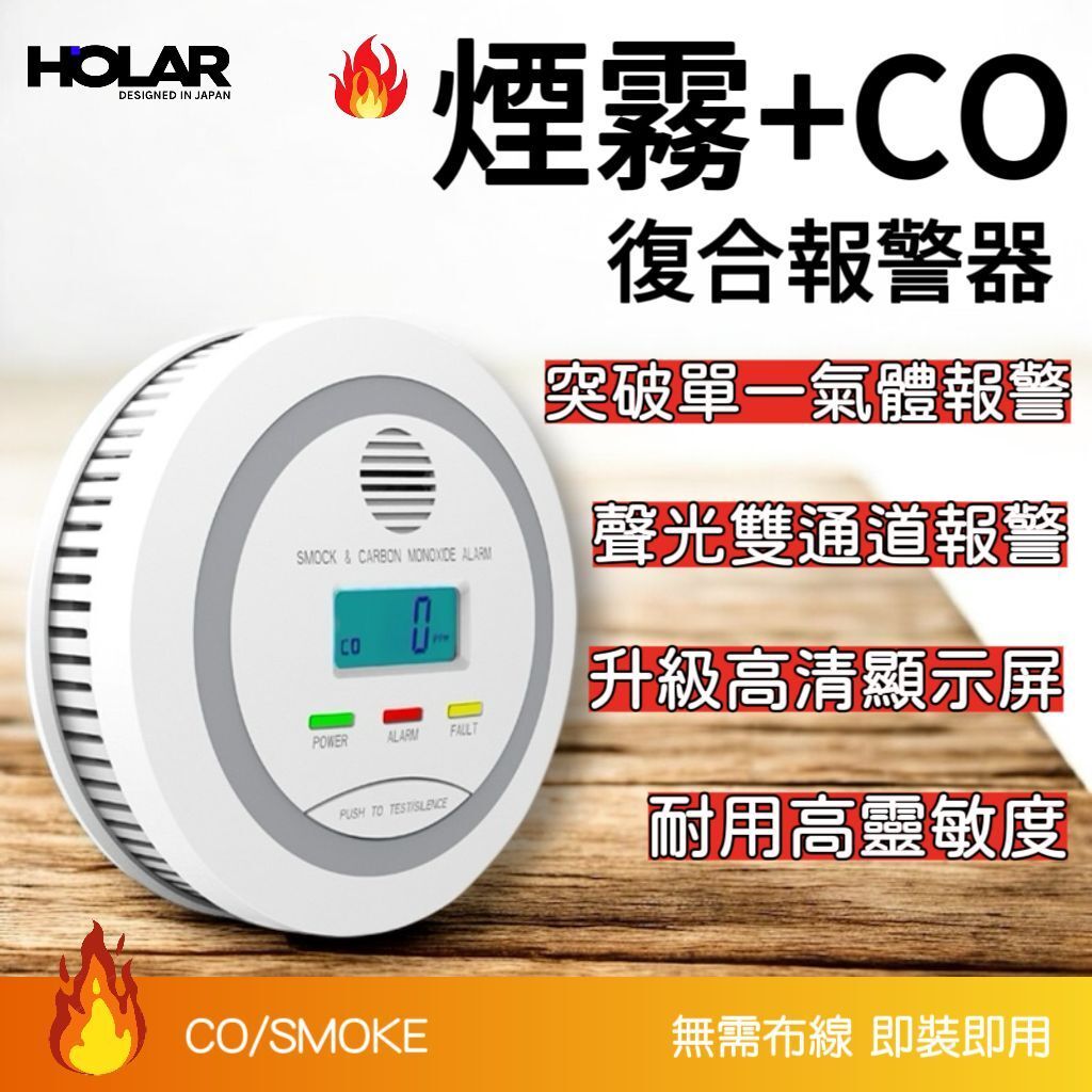 HOLAR JAPAN 防火煙霧警報器 煙霧一氧化碳複合警報器 co偵測器家用警報器 煙霧探測 商用倉庫警報器 HS0191