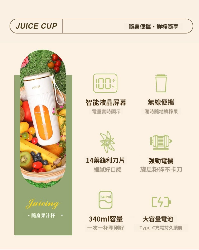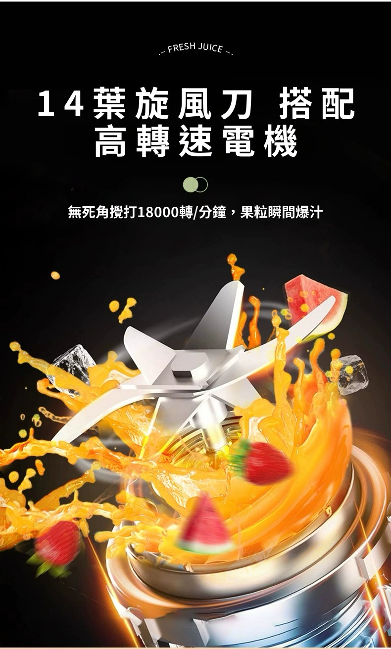 HOLAR JAPAN 14葉刀片便攜式榨汁機 | 果汁機 | 大容量果汁杯 HS0098