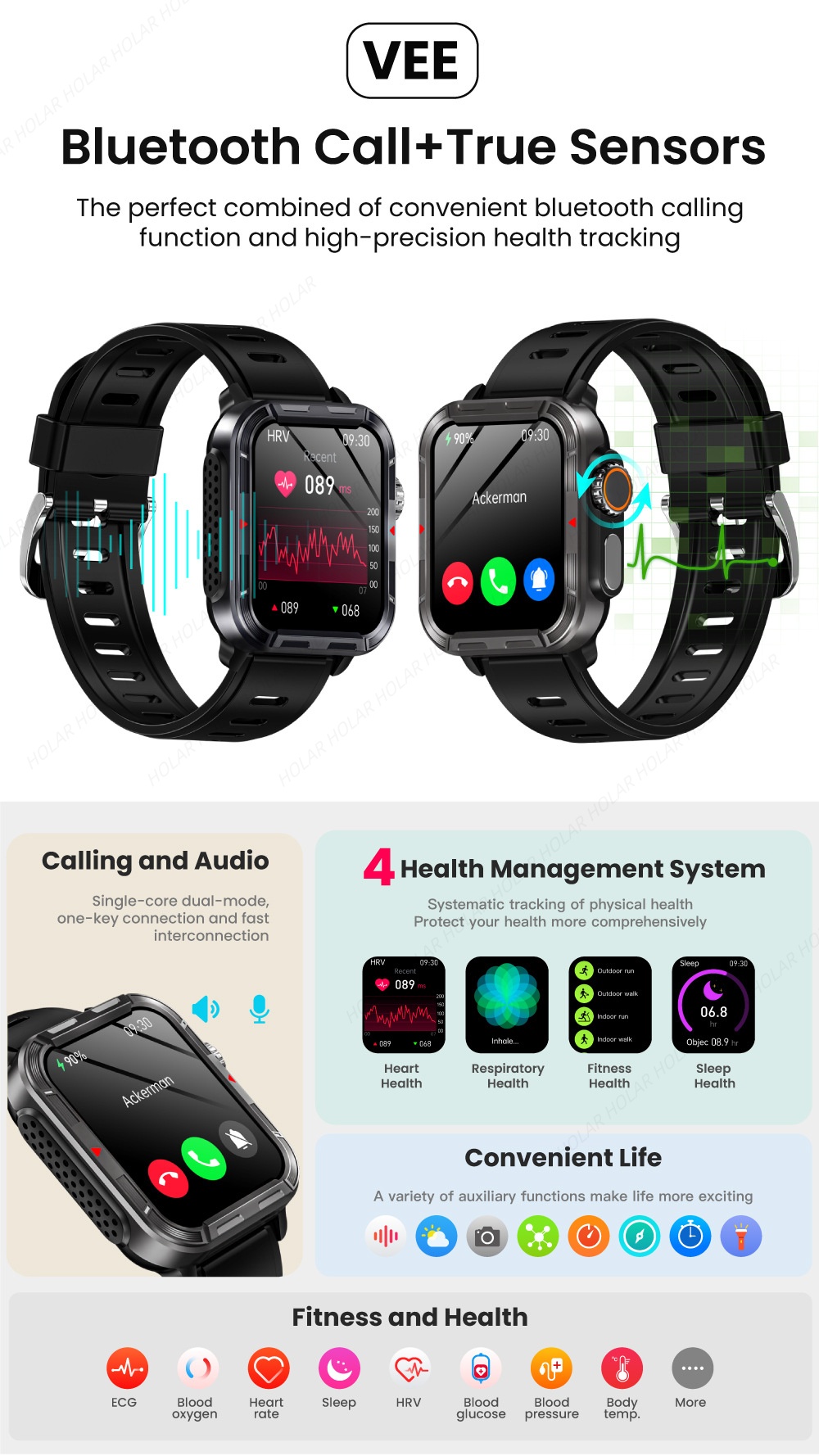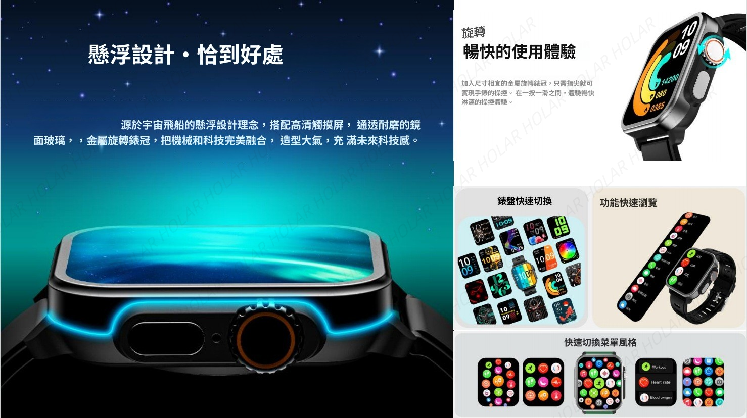 HOLAR JAPAN ECG+PPG心電偵測血氧無創血糖智能手錶 HS0040
