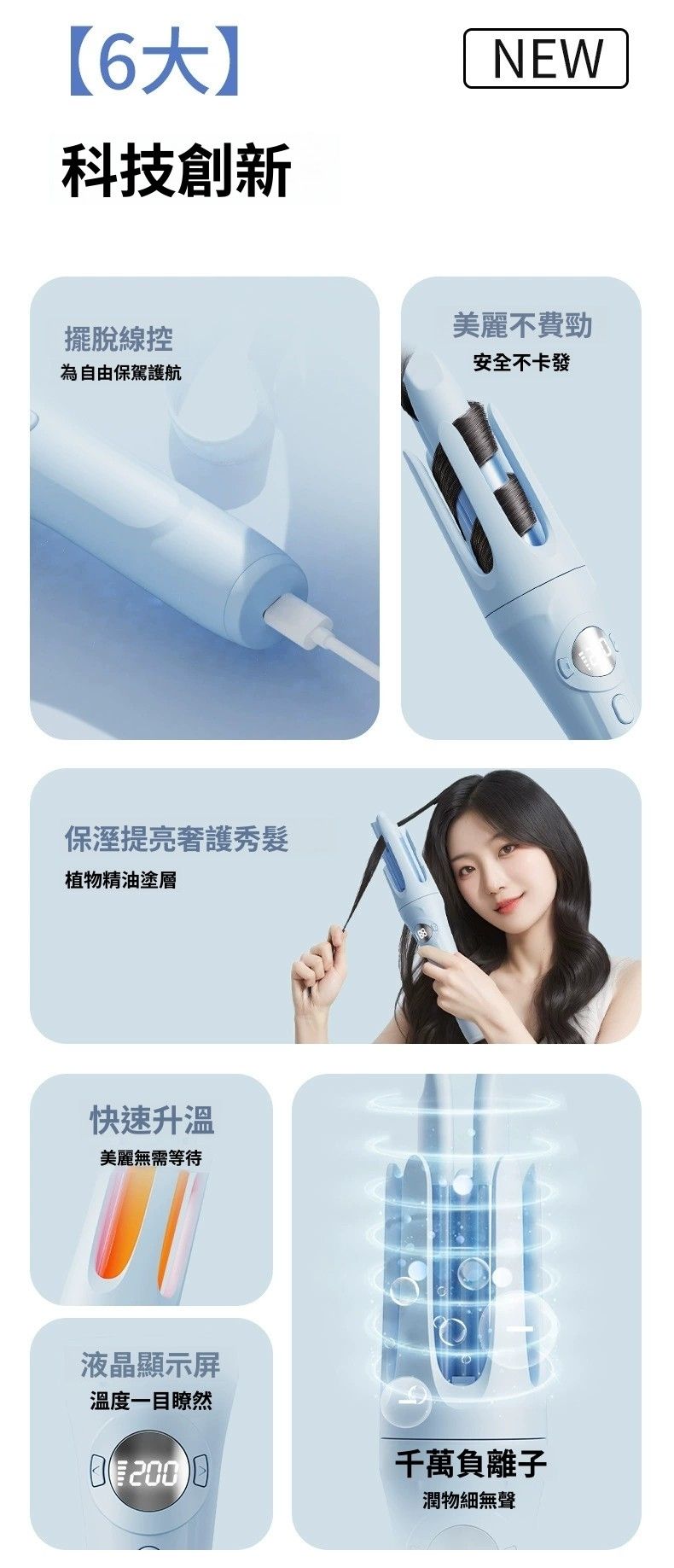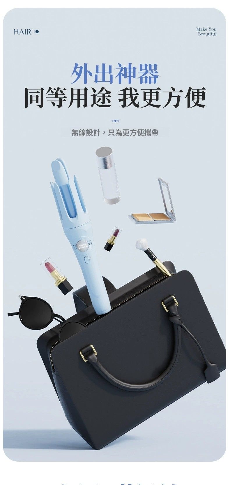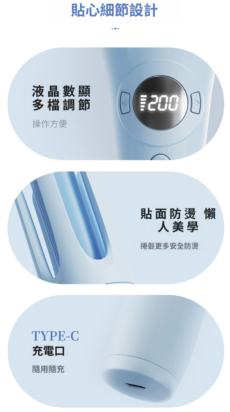 HOLAR JAPAN USB充電無線自動捲髮棒32MM大波浪捲髮器 HS0088 *無線32mm捲髮棒* 無線設計擺脫了電源線的束縛,方便在不同場景下使用,無論是在家中隨意變換位置,還是外出旅行都能輕鬆應對。 32mm,適合打造出自然大捲,能為頭髮增添蓬鬆感與動感。 數顯可顯示溫度,三檔調溫,以適應不同髮質的需求,減少對頭髮的損傷。 操作應該較為簡易,即使是新手也能快速上手做出理想的捲髮造型 。 • 保濕提亮:搭配精油塗層,能奢護秀發,起到保濕提亮的效果。 • 快速升溫:可快速達到使用溫度,節省等待時間。 • 便捷控溫:配備液晶顯示屏,能清楚顯示溫度,方便調控。 • 滋養髮絲:釋放千萬負離子,有助於減少靜電,呵護頭髮。 溫馨提示:請依照說明書指引使用5V2A充電器充電,如用5V1A充電會導致充不入電,謝謝