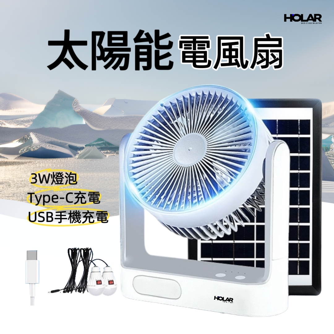 HOLAR JAPAN 太陽能充電版多功能風扇|電筒風扇|掛扇|座枱風扇|戶外風扇 HS0114