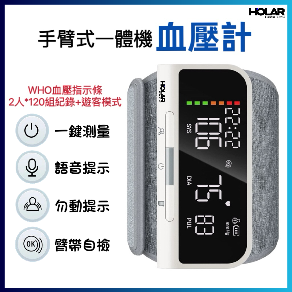 HOLAR JAPAN 一體式電子手臂血壓計|血壓測量儀 便攜無線手臂式血壓計 HS0103