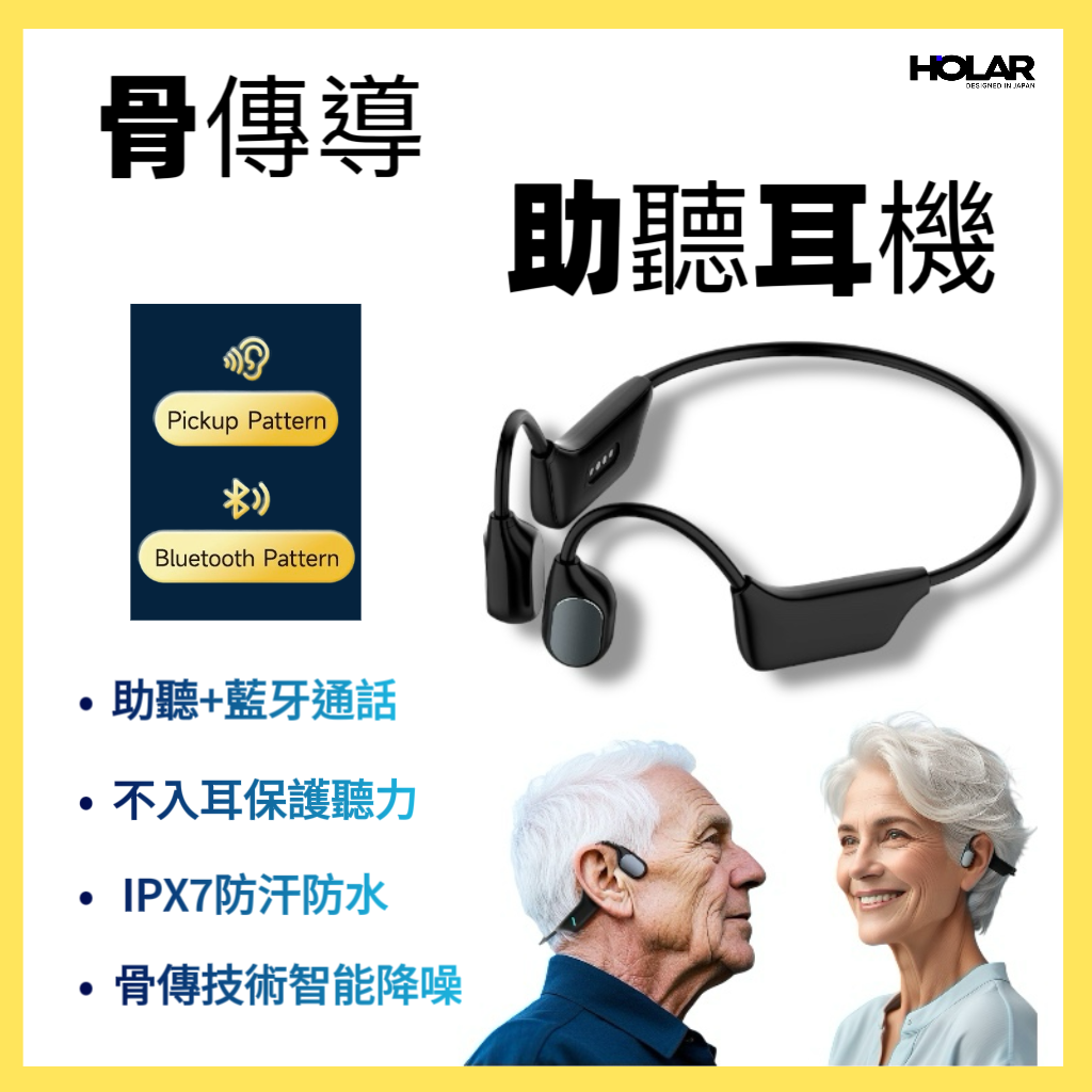HOLAR JAPAN 無線版骨傳導智能降噪助聽器|藍牙耳機功能|放大器|長者助聽器 HS0107