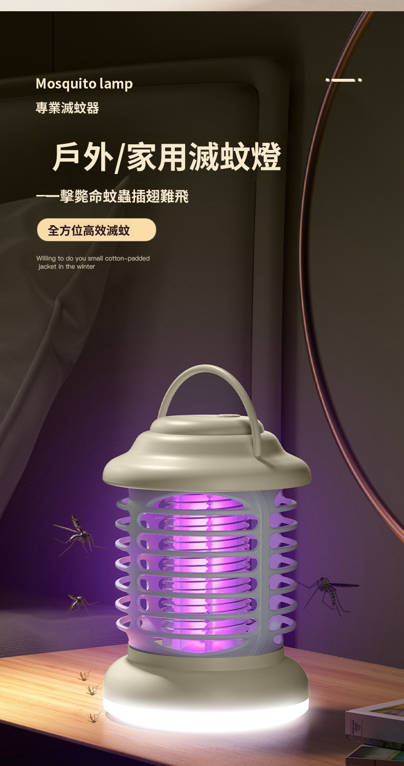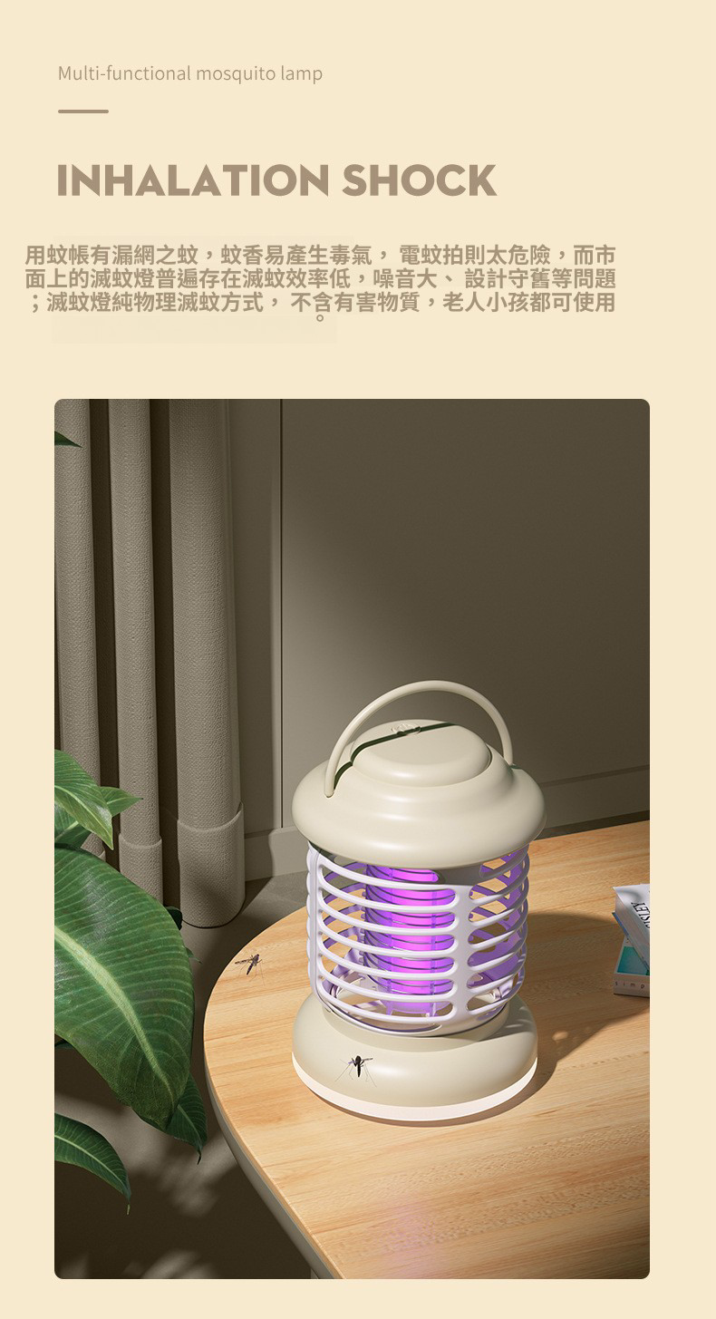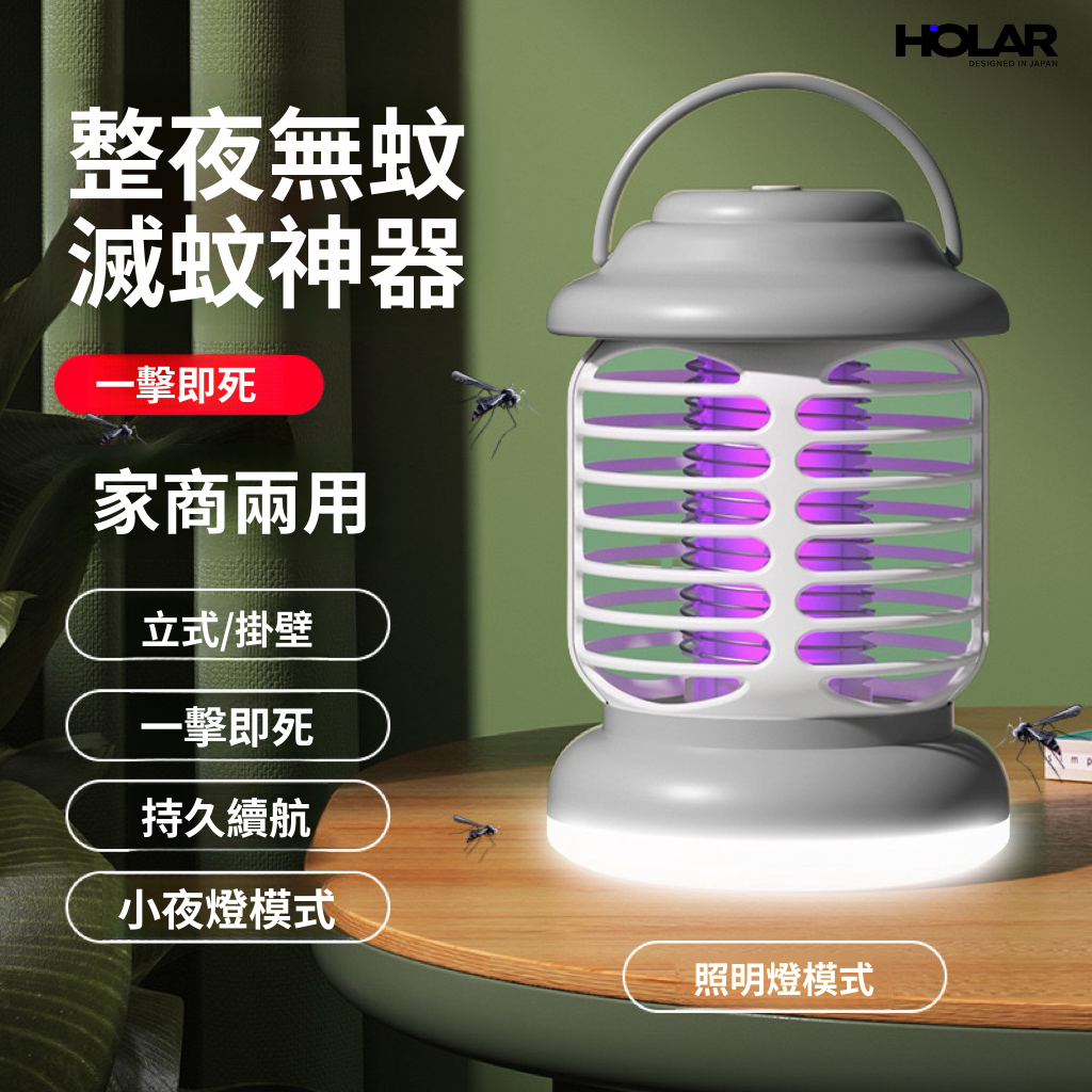 HOLAR JAPAN 充電款電擊滅蚊燈帶照明家用|光觸媒驅蚊器誘蚊燈捕蚊器|室內戶外兩用滅蚊器 HS0146