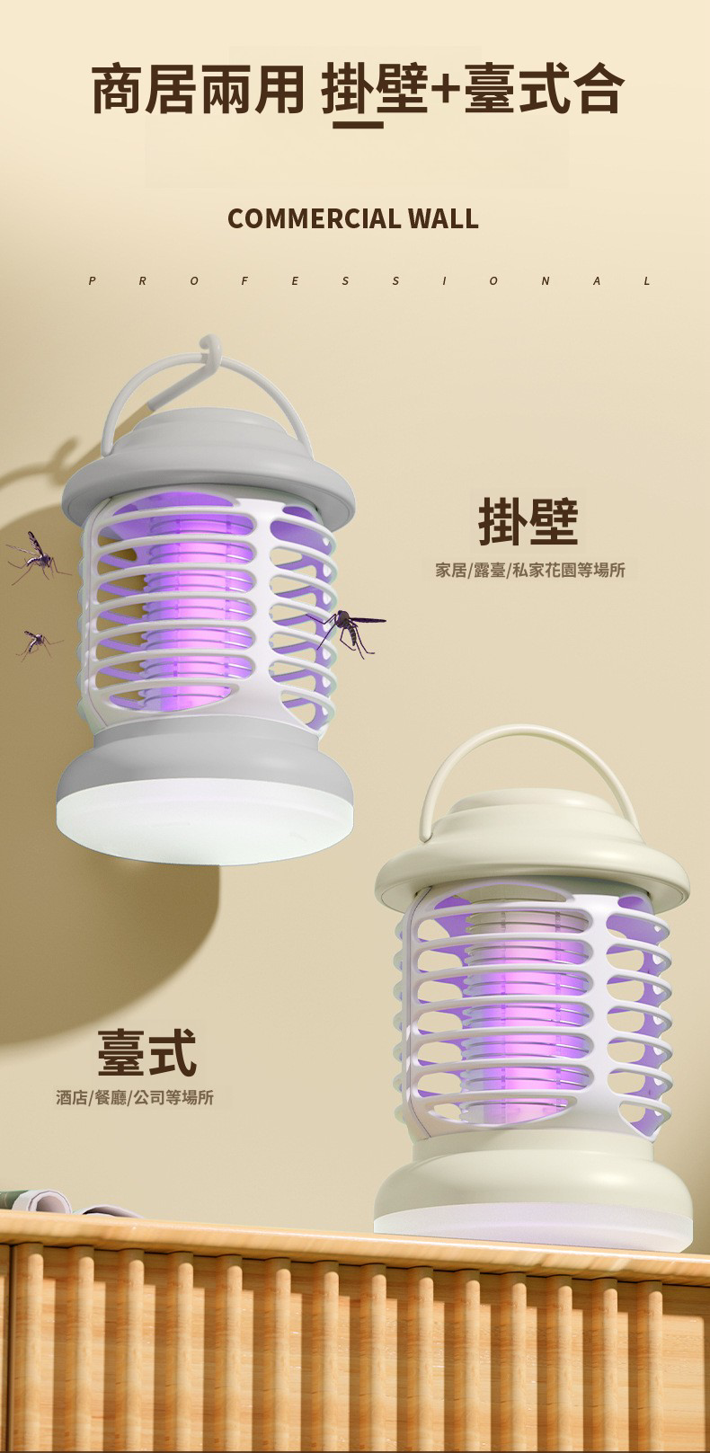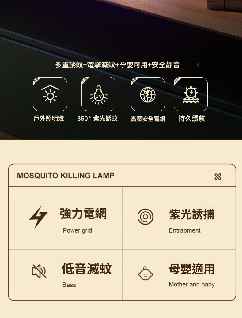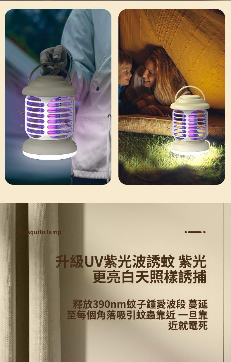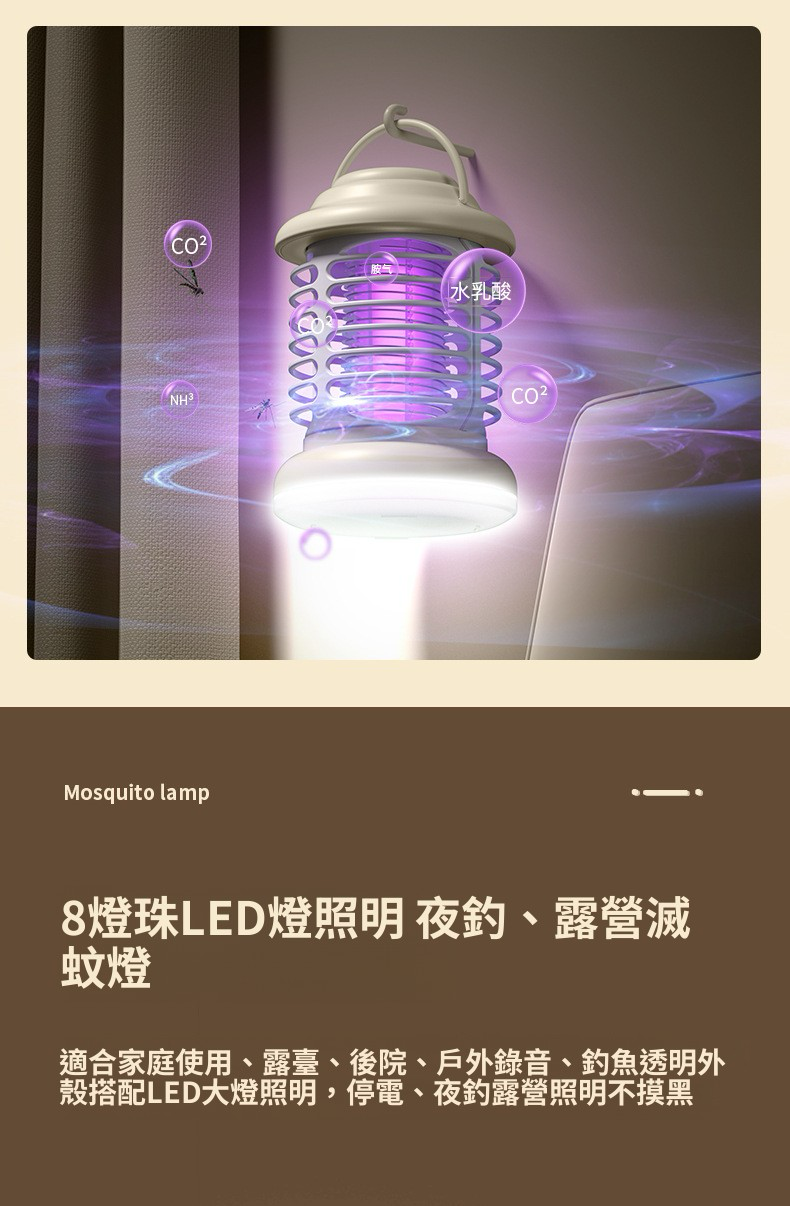 HOLAR JAPAN 充電款電擊滅蚊燈帶照明家用|光觸媒驅蚊器誘蚊燈捕蚊器|室內戶外兩用滅蚊器 HS0146